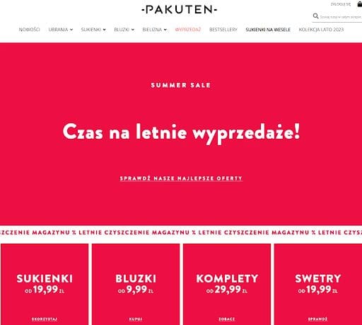 Zdj. 1. Popularny e-commerce promujący letnie kolekcje, zwracający uwagę na sezonowość. Źródło: www.pakuten.pl.