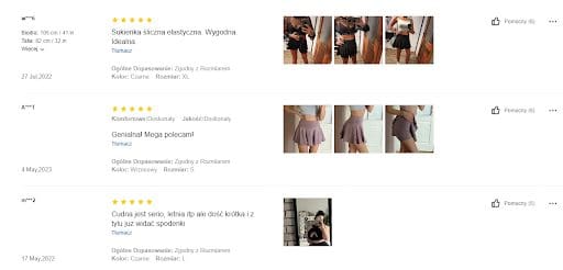 Zdj. 3. Pozytywne opinie produktowe będące efektem wysokiej jakości produktów oraz sprawnej obsługi klientów. Źródło: pl.shein.com.