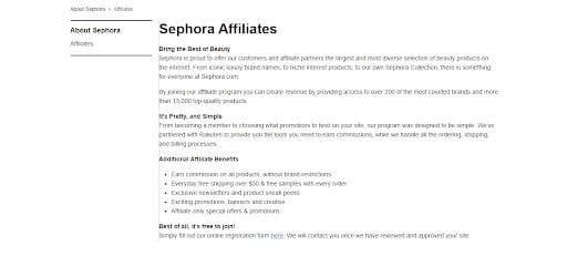 Zdj. 4. Program lojalnościowy marki Sephora. Źródło: www.sephora.com/beauty/affiliates.