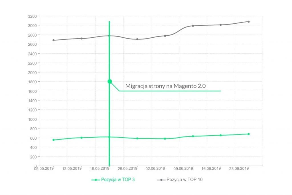 Tak przebiegła realizacja, a czy jej efekty spełniły nasze i Partnera oczekiwania? Dzięki przemyślanej strategii nie tylko uniknęliśmy tak często spotykanych spadków, ale… bezpośrednio po migracji zanotowaliśmy wzrosty widoczności!